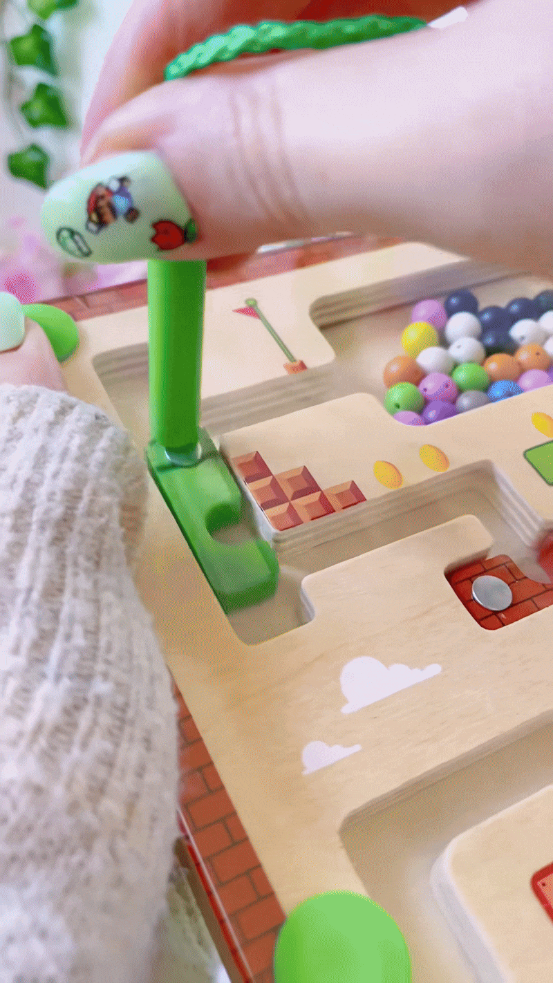 Fine Motor Development → Using the magnetic pen to guide beads through the maze helps children strengthen their grip, improve coordination, and prepare for writing.