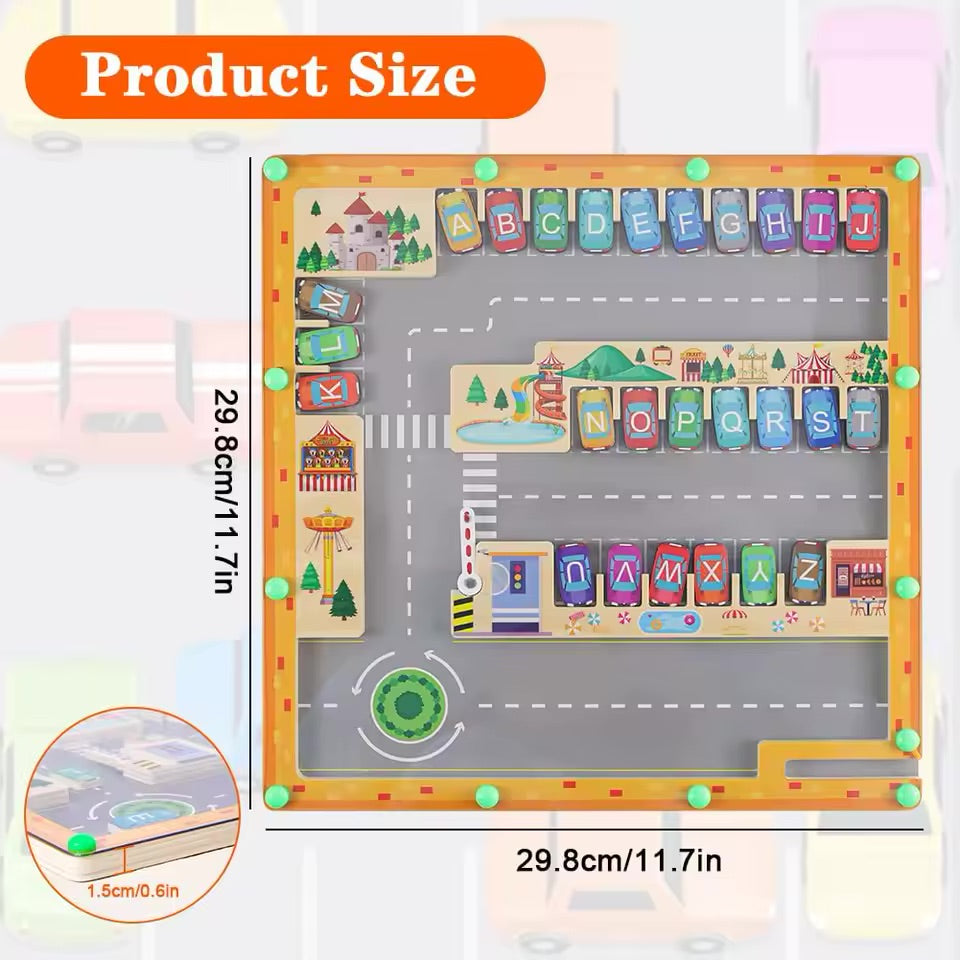 Make learning letters fun and hands-on with the Wooden Magnetic Alphabet Car Maze Board! 🎉